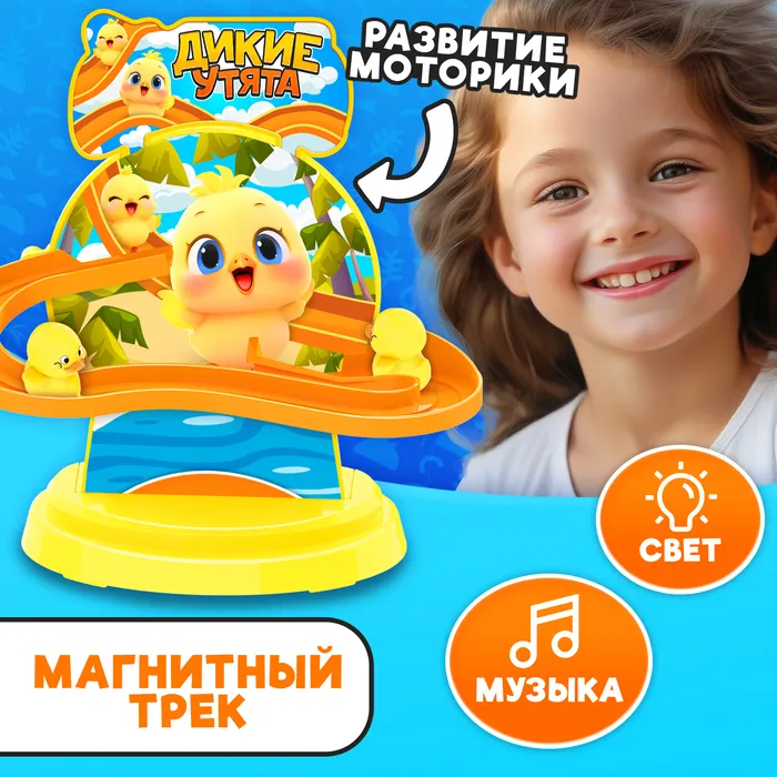 Трек «Дикие утки» — увлекательное путешествие для юных исследователей! Представьте себе: яркий, красочный трек с захватывающими спусками, по которому с бешеной скоростью несутся маленькие утята. А все благодаря магнитному эффекту и веселой светомузыке! Этот интерактивный набор – не просто игрушка, а целый мир приключений, который развивает мелкую моторику и координацию движений у детей.