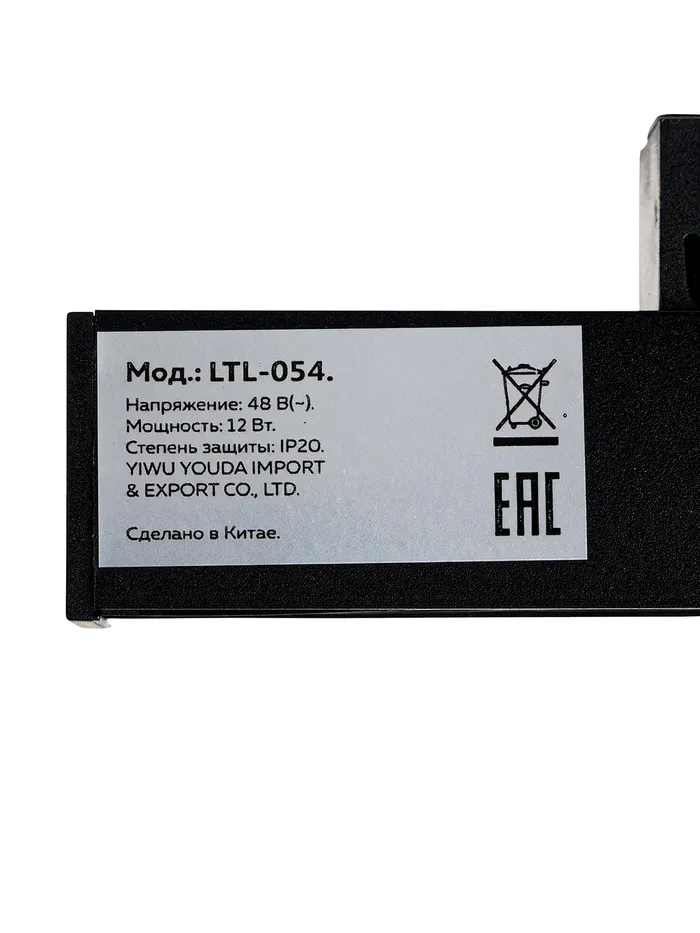 Трековый магнитный светильник, серия "Broad" LTL-054, 12 Вт, 960 Лм, 48В, 4000К, черный — Характеристики