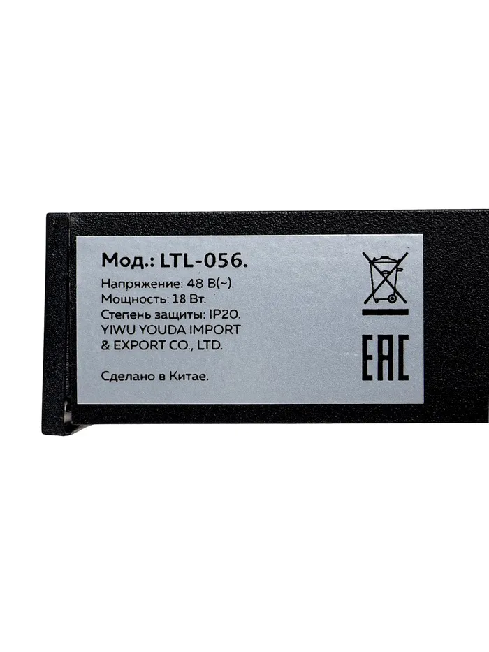 Трековый магнитный светильник, серия "Broad" LTL-056, 18 Вт, 1440 Лм, 48В, 4000К, черный — Характеристики