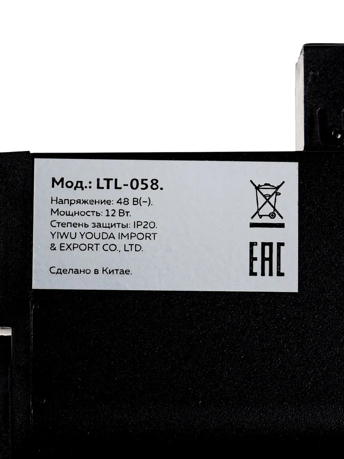 Трековый магнитный светильник, серия "Broad" LTL-058, 12 Вт, 960 Лм, 48В, 4000К, черный — Характеристики