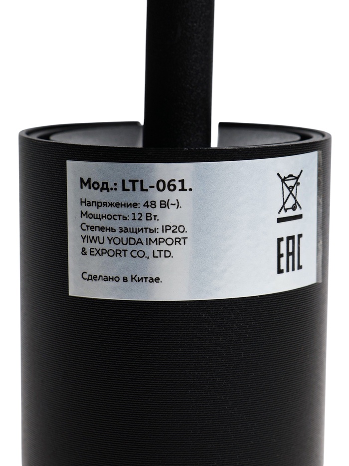 Трековый магнитный светильник, серия Broad LTL-061, 12 Вт, 960 Лм, 48 В, 3000К, чёрный — Характеристики