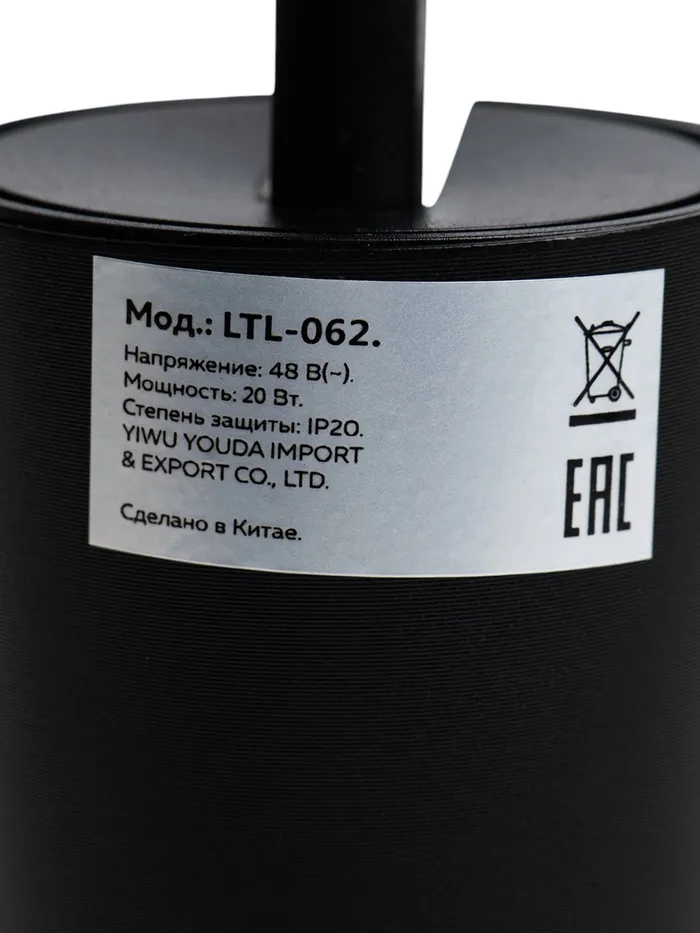 Трековый магнитный светильник, серия "Broad" LTL-062, 20 Вт, 1600 Лм, 48В, 4000К, черный — Характеристики