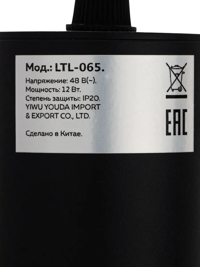 Трековый магнитный светильник, серия "Broad" LTL-065, 12 Вт, 960 Лм, 48В, 3000К, черный — Характеристики