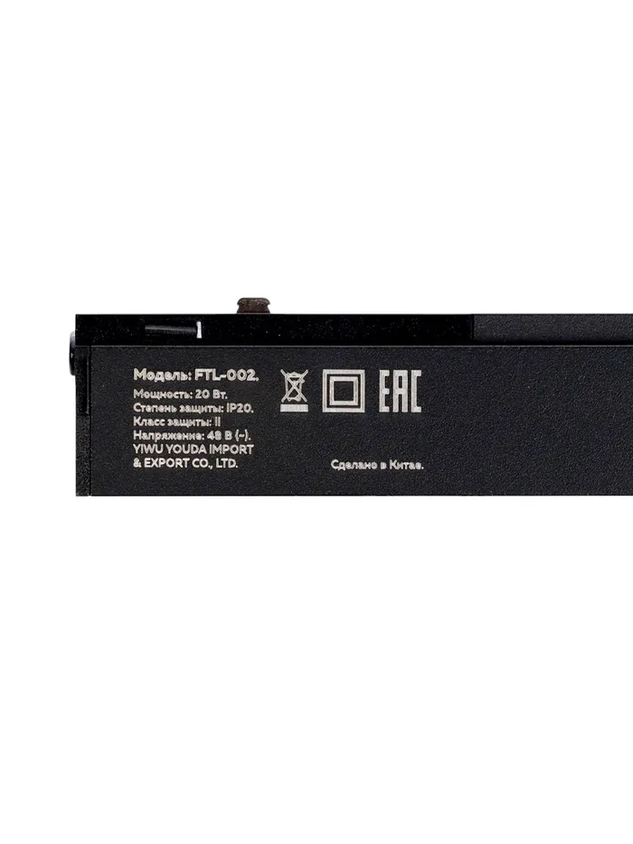 Трековый светильник FTL-002, серия Flat, 20 Вт, 48 В, 3000К, IP20, 600 мм, чёрный, свечение тёплое белое — Характеристики