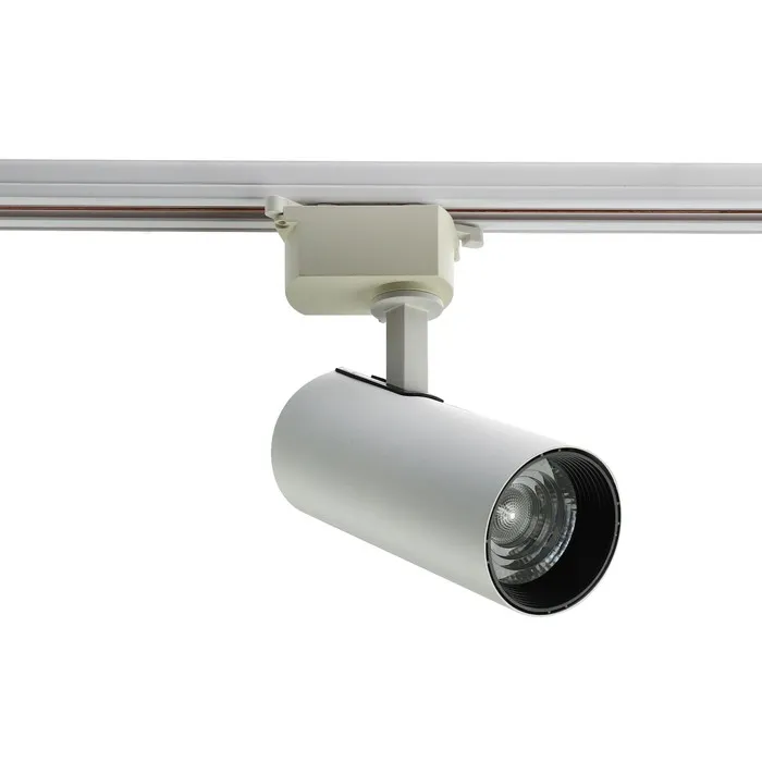Светильник выполнен в цилиндрической форме и имеет белый цвет корпуса, что придает ему стильный и современный вид. Холодный белый свет с температурой 6500К создает комфортную атмосферу, способствующую концентрации и продуктивности. Благодаря углу рассеивания в 24°, свет направляется точно туда, где это необходимо, без излишних бликов и теней. Светильник легко крепится на однофазный шинопровод, что делает его установку простой и удобной.