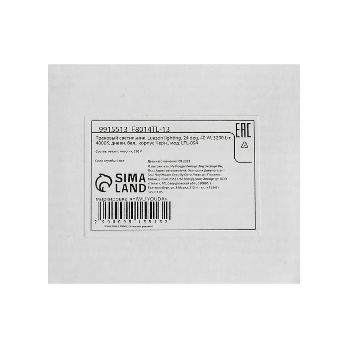 Трековый светильник Luazon lighting, LTL-094, 40 Вт, 3200 Лм, 4000 K, чёрный, свечение нейтральное белое — Характеристики