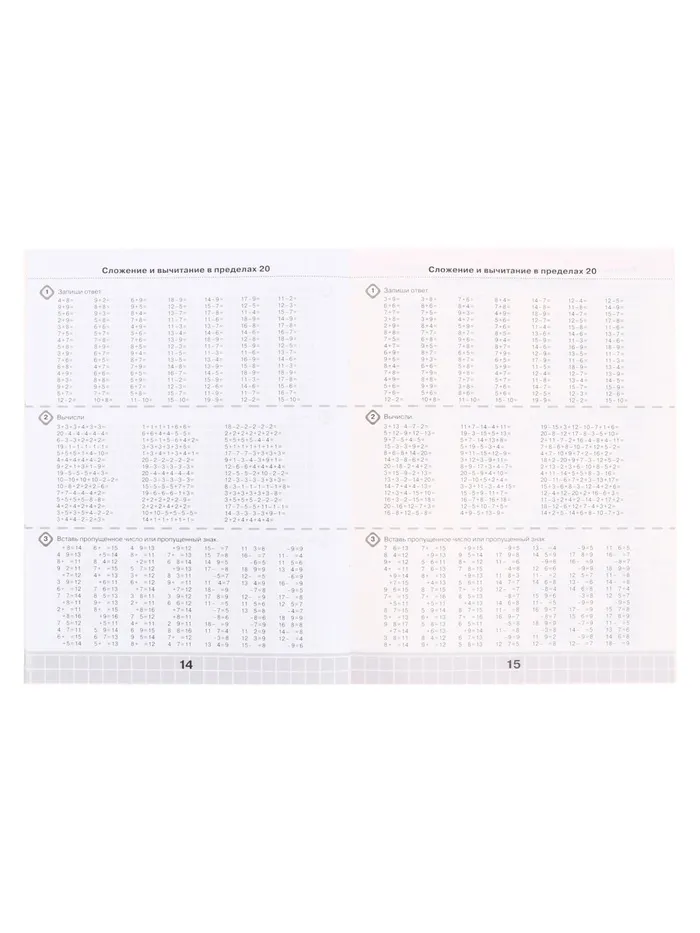 Для отработки навыка счёта до автоматизма предложены примеры разного уровня сложности, распределенные по трём блокам.