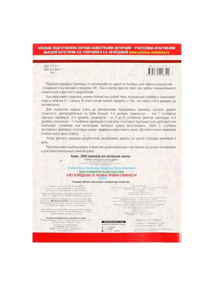 Пособие содержит примеры по математике по одной из базовых для первого класса тем – «Сложение и вычитание в пределах 20». Как и любая другая тема, она требует внимательного осмысления и прочного закрепления.