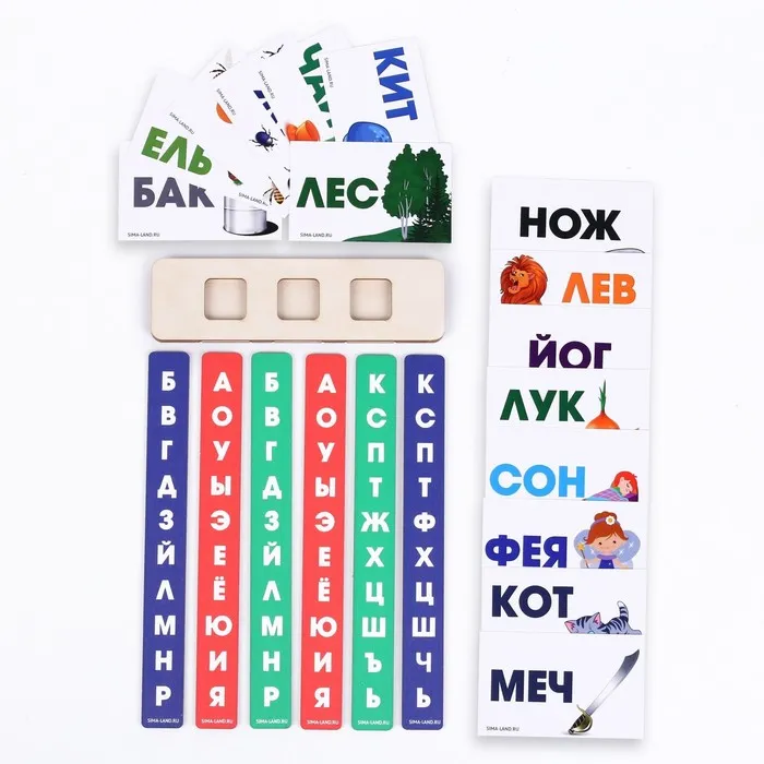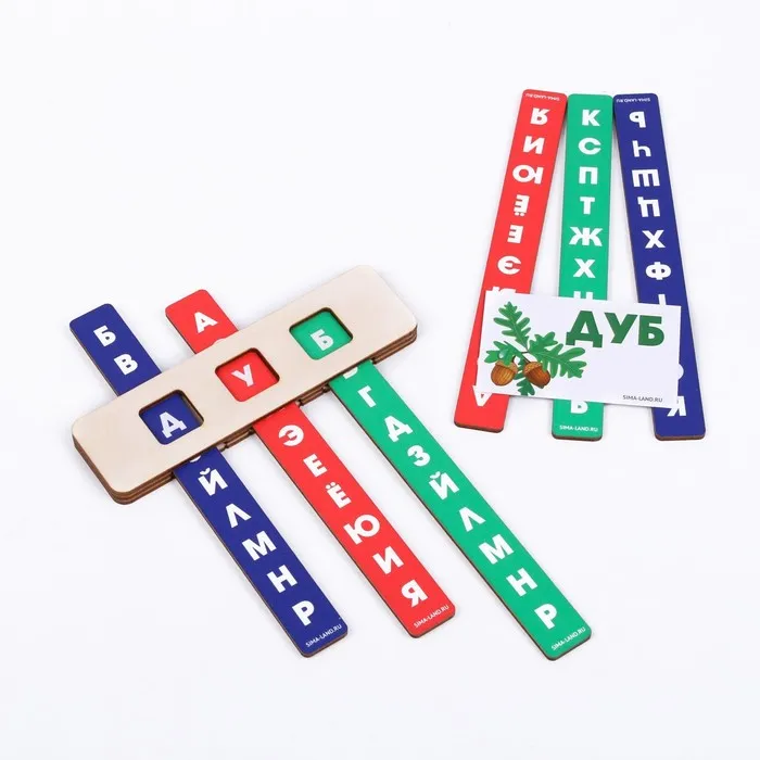 - Попросите ребёнка найти нужные буквы на плашках и вставить их в основу по порядку.