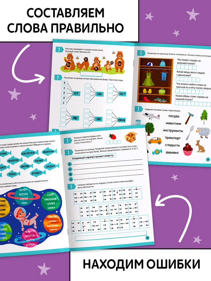 Эта книга превращает обучение в увлекательный процесс. Дети учатся находить ошибки, создавать новые слова из букв и развивать речь. Такие занятия не только укрепляют знания, но и стимулируют мышление. Регулярная практика помогает сделать язык более понятным и близким, а учёбу — приятной и эффективной. Это отличный способ провести время за полезным делом, особенно для школьников и тех, кто хочет улучшить свои навыки.