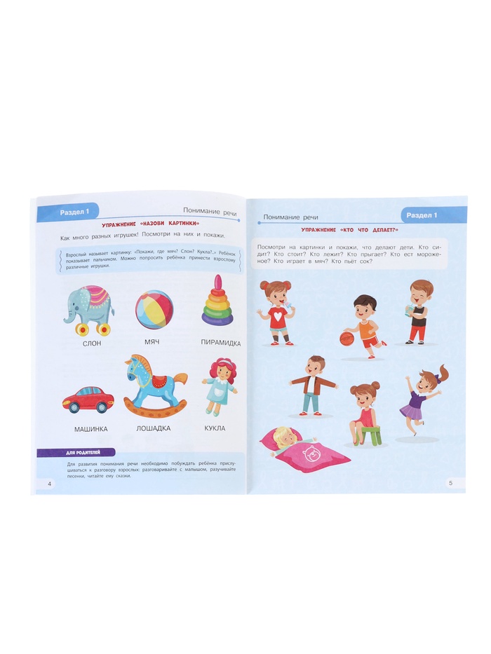 - Игровые упражнения расположены по возрастанию сложности, что позволяет ребёнку двигаться от простого к сложному.
