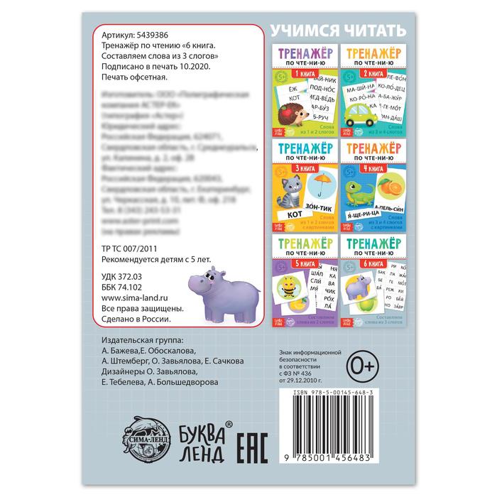 Тренажёр по чтению «6 книга. Составляем слова из 3 слогов» — Характеристики
