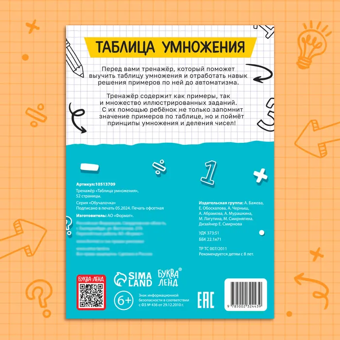Тренажёр «Таблица умножения», 52 стр. — Характеристики