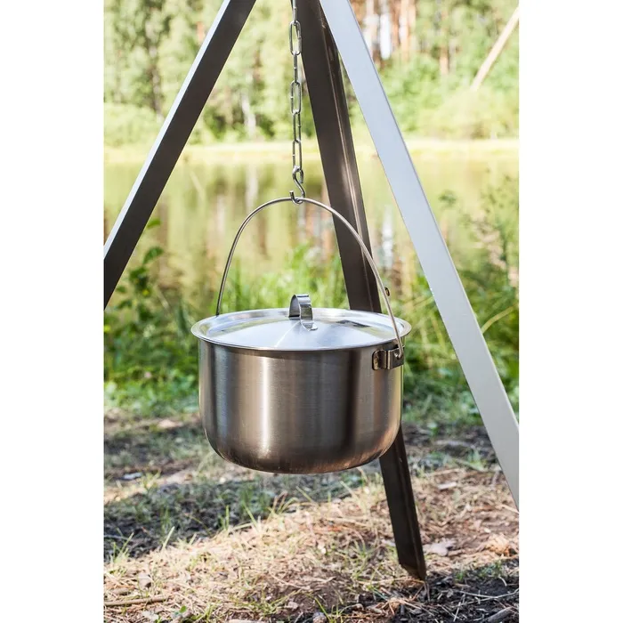 Сварить суп из свежевыловленной рыбки? А может, нагреть воду для посиделок с чаем у костра? С треногой для вас откроется масса возможностей по приготовлению пищи в походных условиях. Установите изделие, повесьте чан на крюк и наслаждайтесь блюдами, приготовленными на свежем воздухе.