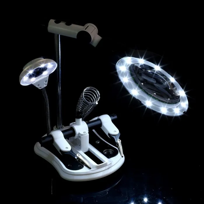 Третья рука для пайки, с зажимом, 2,5х, 5х 10х, диаметр 105мм, с подсветкой — Характеристики