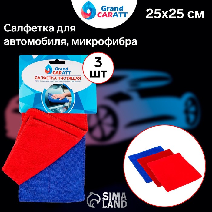 Тряпка для мытья авто, Grand Caratt, микрофибра, 180 г/м², 25×25 см, набор 3 шт — Характеристики