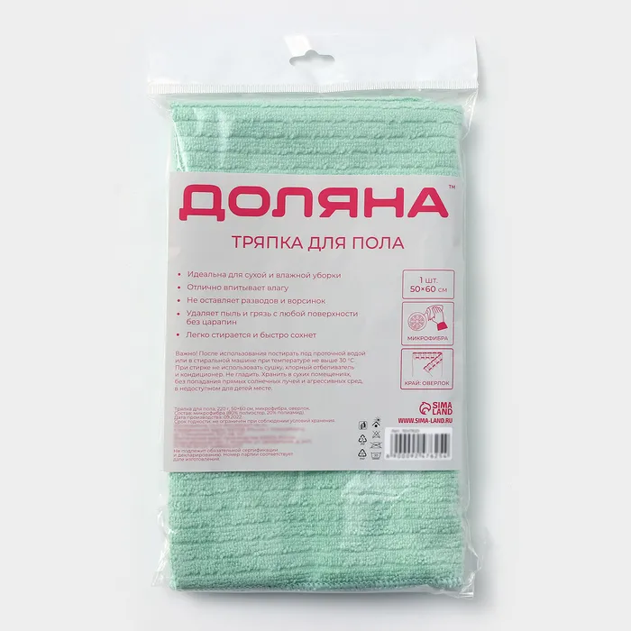 Тряпка для пола Доляна, 220 г/м², 50×60 см, микрофибра, с оверлоком, МИКС — Характеристики