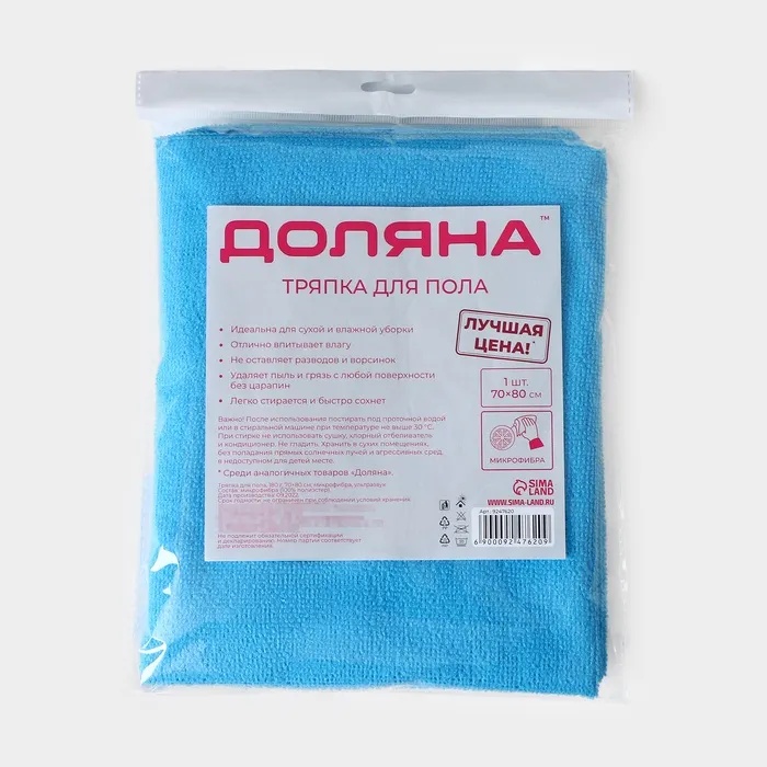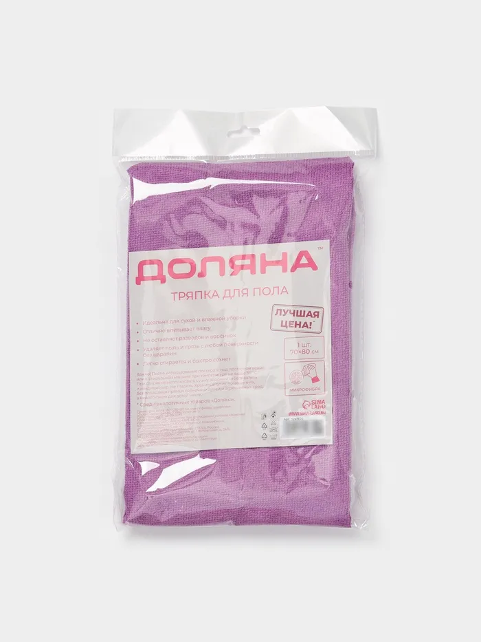 Тряпка для пола из микрофибры подходит для любых покрытий: линолеума, ламината, паркета, кафельной плитки, мрамора. Она не царапает поверхность и отлично впитывает воду. Благодаря ультразвуковой обработке краёв тряпка не будет расслаиваться и прослужит вам дольше.