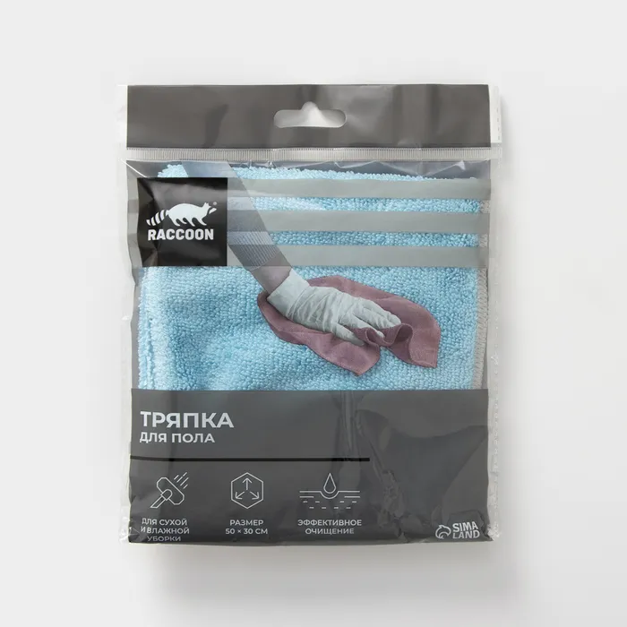 Тряпка для пола Raccoon, 250 г/м², 50×30 см, микрофибра, с оверлоком, 1 шт, голубая — Характеристики