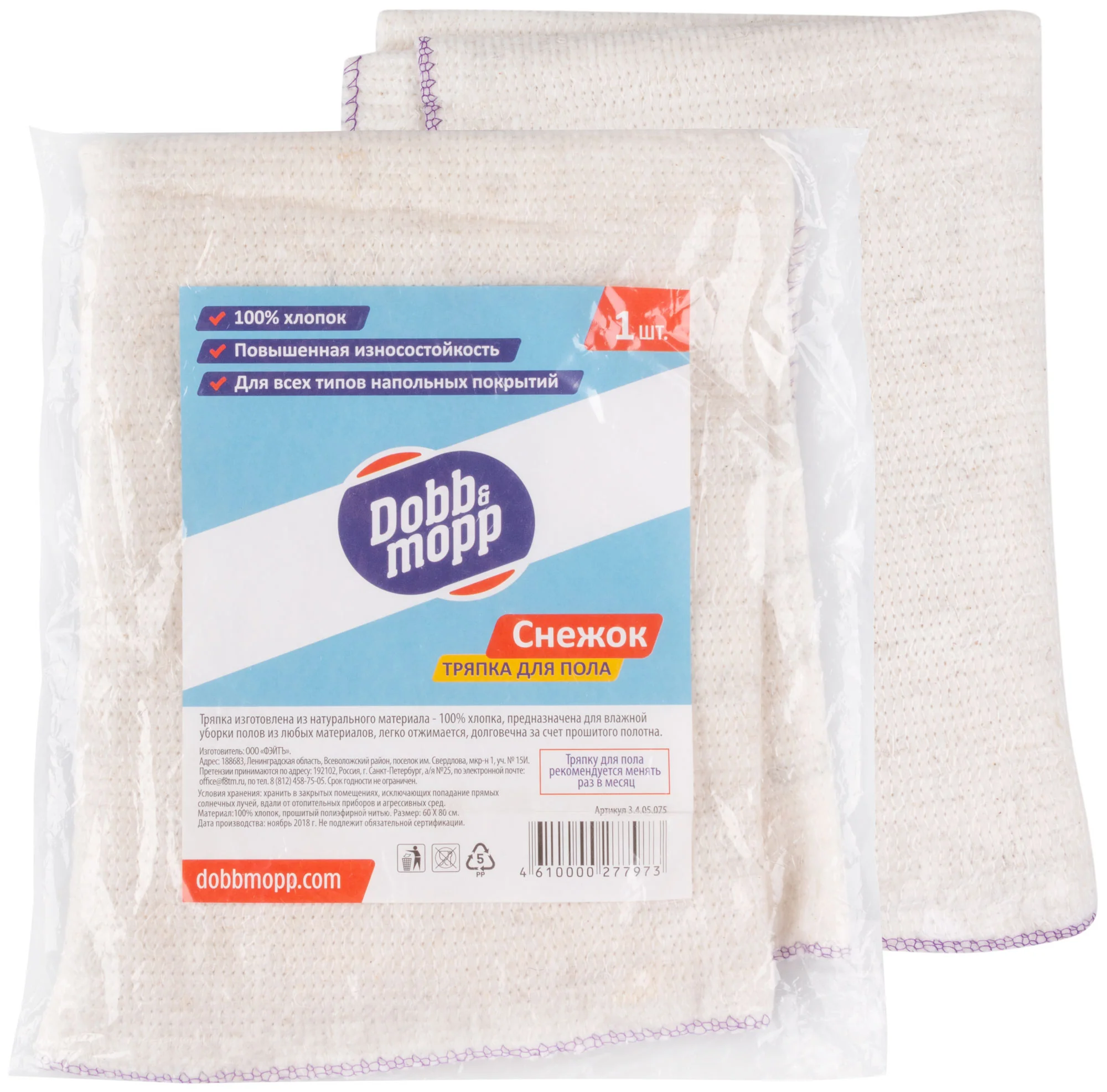 Выберите тряпку для пола "Снежок" от Dobb&Mopp, чтобы обеспечить чистоту и порядок в вашем помещении.