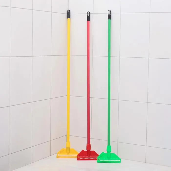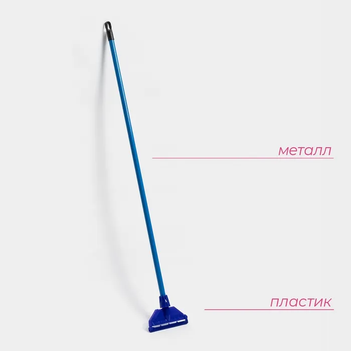 Тряпкодержатель с черенком — очень практичный предмет. Для него вы сами сможете выбрать материал моющей части. Ручка выполнена из пластика, что значительно облегчает вес изделия, а держатель способствует удобному хранению.