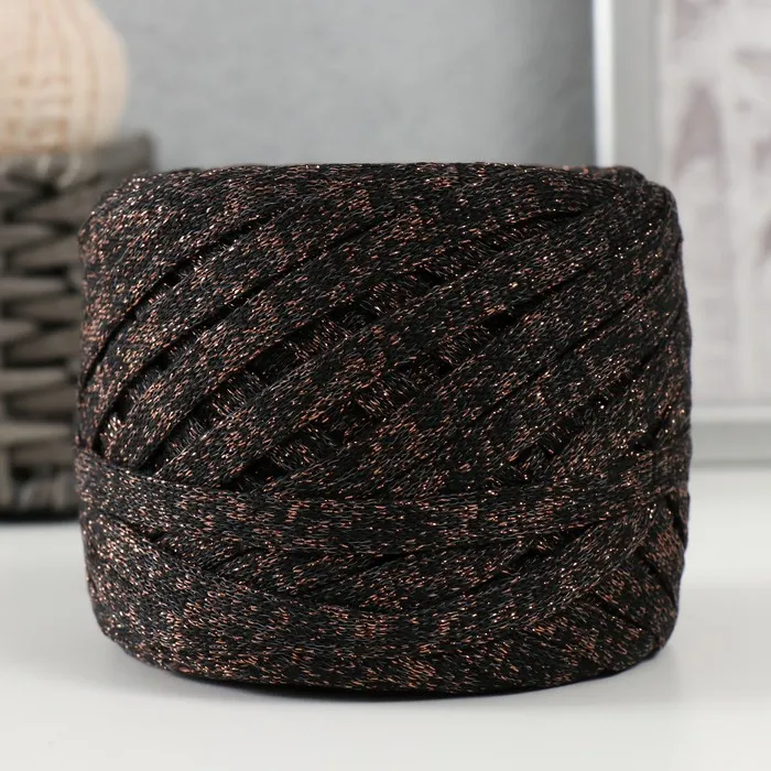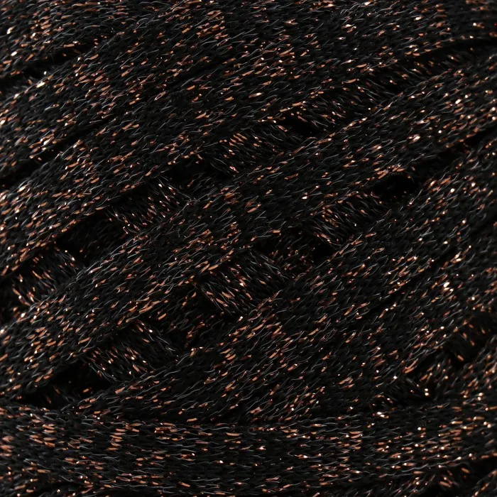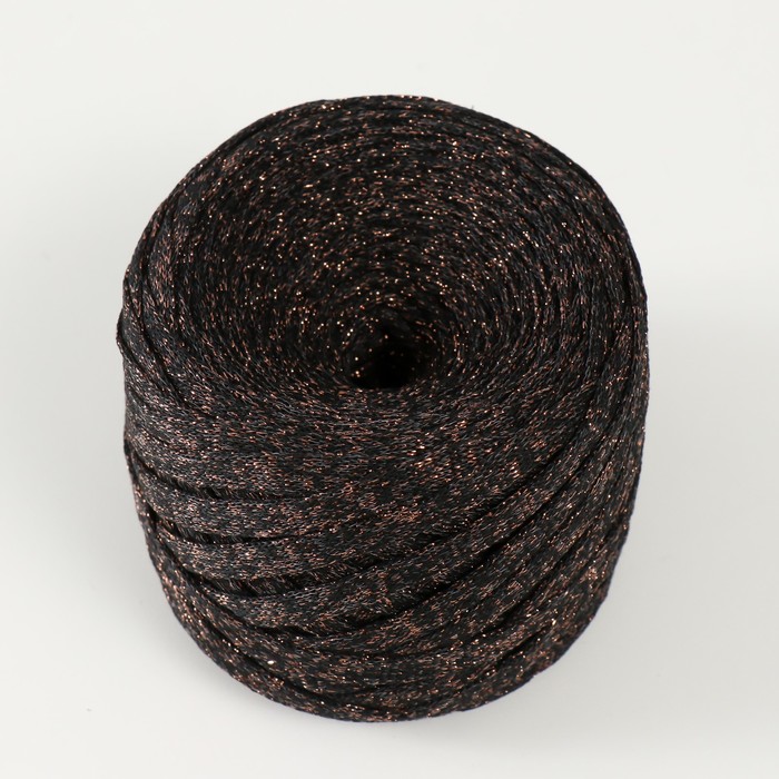 Трикотажная пряжа "Риббон" с люрексом 85м/170±5 гр (Черный, люрекс: Бронза) — Характеристики