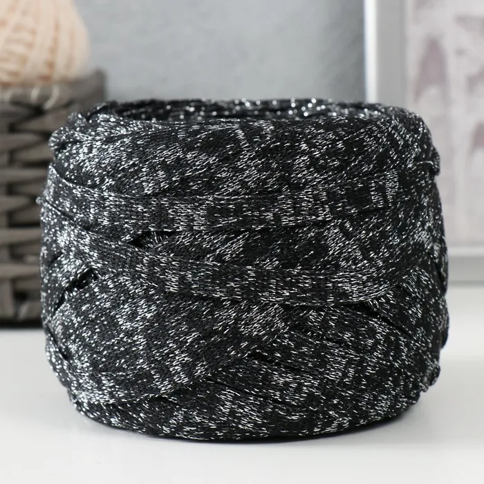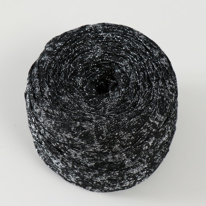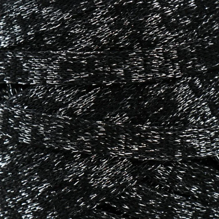 Трикотажная пряжа "Риббон" с люрексом 85м/170±5 гр (Черный, люрекс: Серебро) — Характеристики