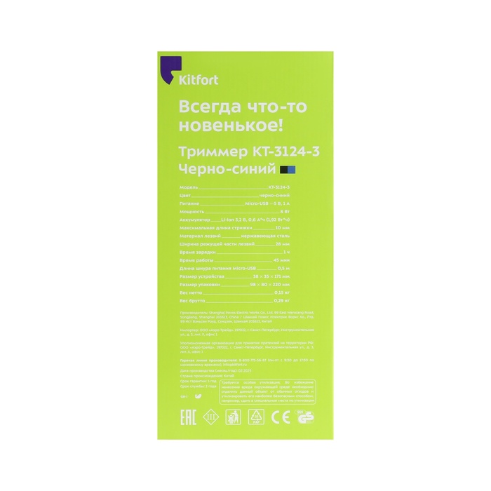 Триммер для волос Kitfort KT-3124-3, для бороды/усов, от АКБ, чёрно-синий — Характеристики