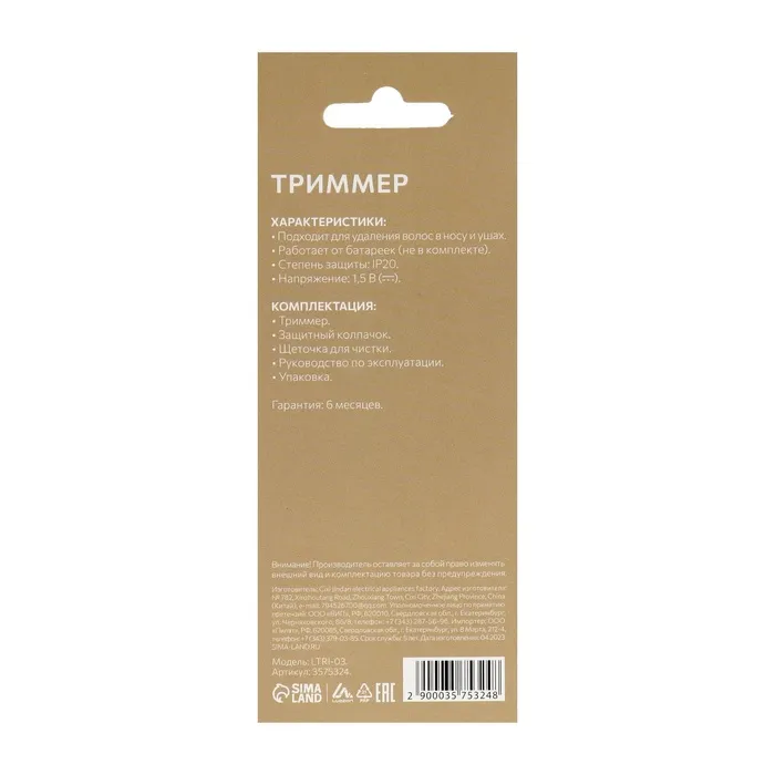 Триммер для волос Luazon LTRI-03, для носа и ушей, от батареек 1хАА, чёрный — Характеристики