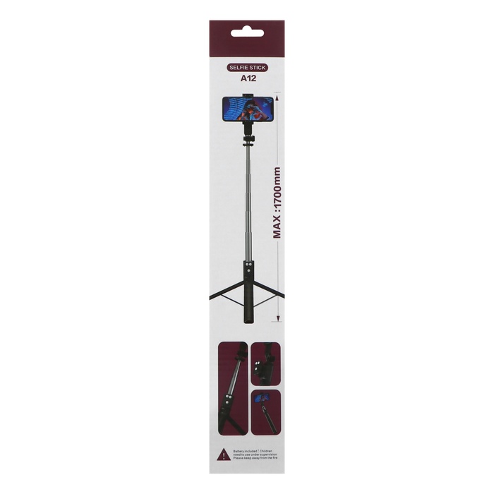 Трипод-монопод A12, высота 31-170 см, в комплекте ПДУ, черный — Характеристики