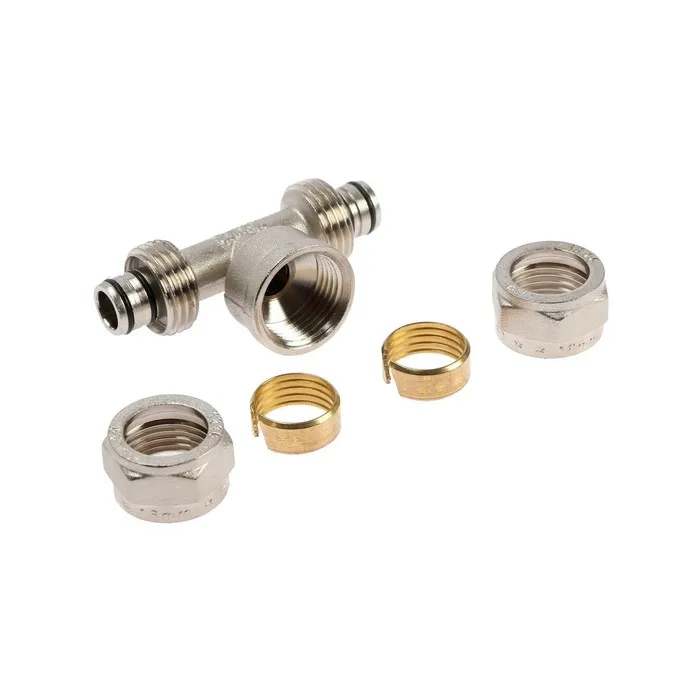 Тройник AQUALINK, обжимной, d=16×1/2" х 16 мм, цанга/гайка/цанга — Характеристики