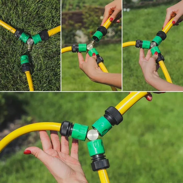Тройник Greengo – эффективный инструмент формирования поливочных линий. Стандартное штуцерное соединение подойдёт для большинства шлангов. Долгий срок службы обеспечит материал, который не подвергается коррозии.