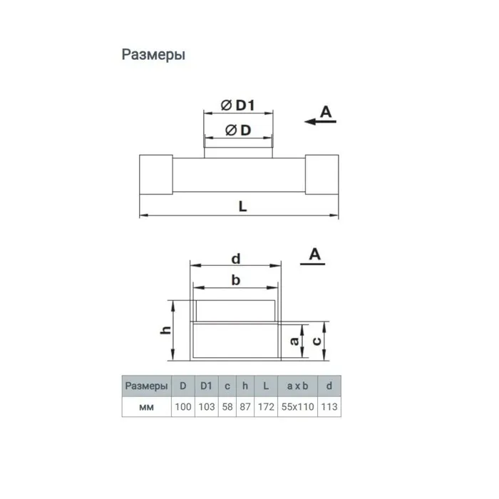 Тройник ZEIN, прямоугольный,55×110 мм, вентиляционный, с переходом на круглый канал d=100 мм — Характеристики