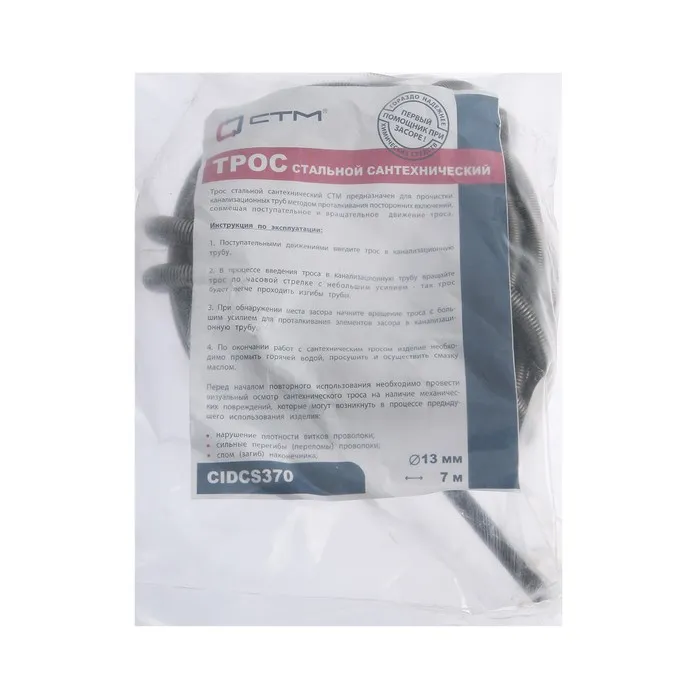 Трос сантехнический «СТМ» CIDCS370, стальной, d=13 мм, L=7 м — Характеристики