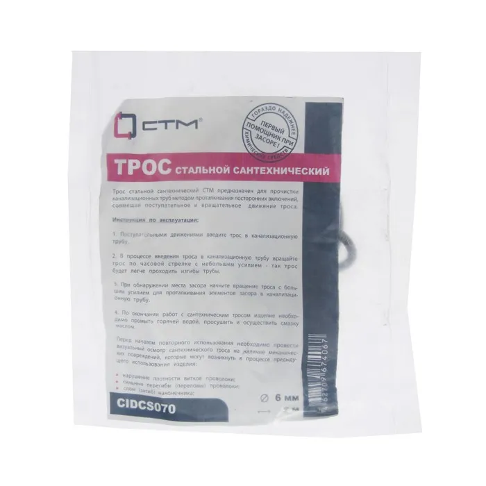 Трос сантехнический "СТМ", с вращающейся ручкой Дн 6 мм, L= 7 м — Характеристики