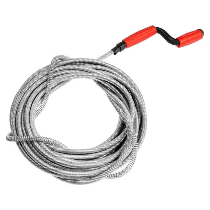 Оснащен трос вращающейся ручкой, что облегчает использование и позволяет эффективно удалять засоры в трубах различного диаметра.