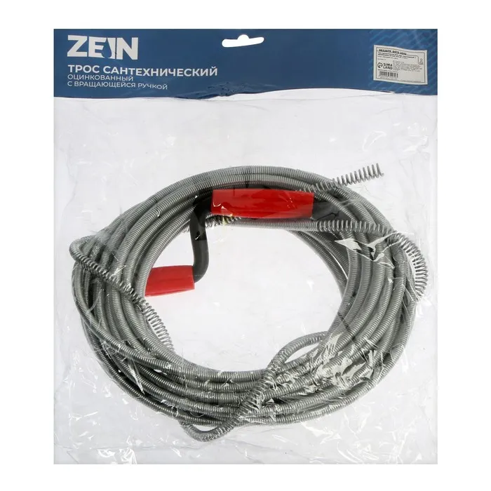 Трос сантехнический ZEIN engr — это инструмент для прочистки труб, изготовленный из высококачественной оцинкованной стали.