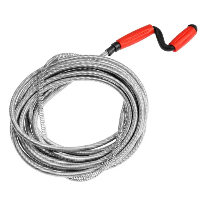 Оснащен трос вращающейся ручкой, что облегчает использование и позволяет эффективно удалять засоры в трубах различного диаметра.