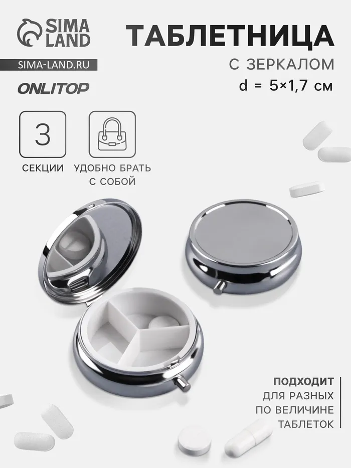 Таблетница, d = 5 см, 3 секции, цвет серебристый