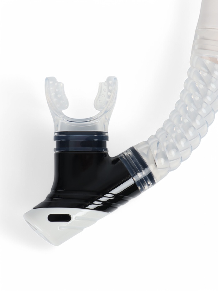 В верхней части установлен «сухой» клапан — поплавок, который перекрывает входное отверстие и таким образом предотвращает попадание воды во время погружения. Нижний дренажный клапан позволяет вывести попавшую в трубку воду. Особая конструкция клапана исключает возможность вдоха остатков воды.