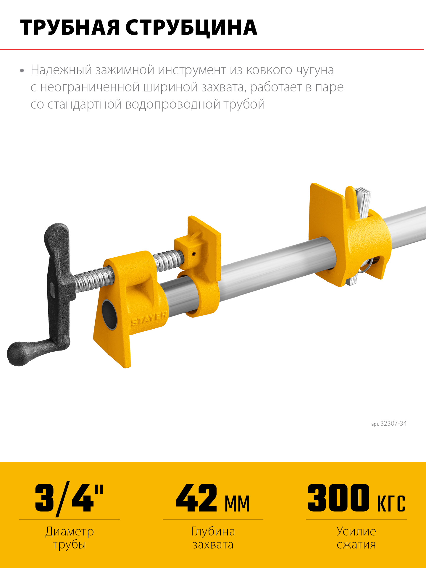 Профессиональный надежный распорный/зажимной инструмент из ковкого чугуна. Ширина захвата ограничена только размером направляющей трубы.