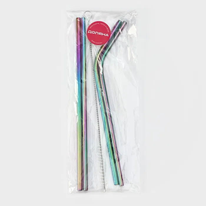 Трубочки для коктейлей Доляна Color, 21 см, с ёршиком, нержавеющая сталь, 4 шт. — Характеристики