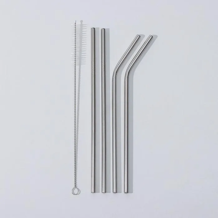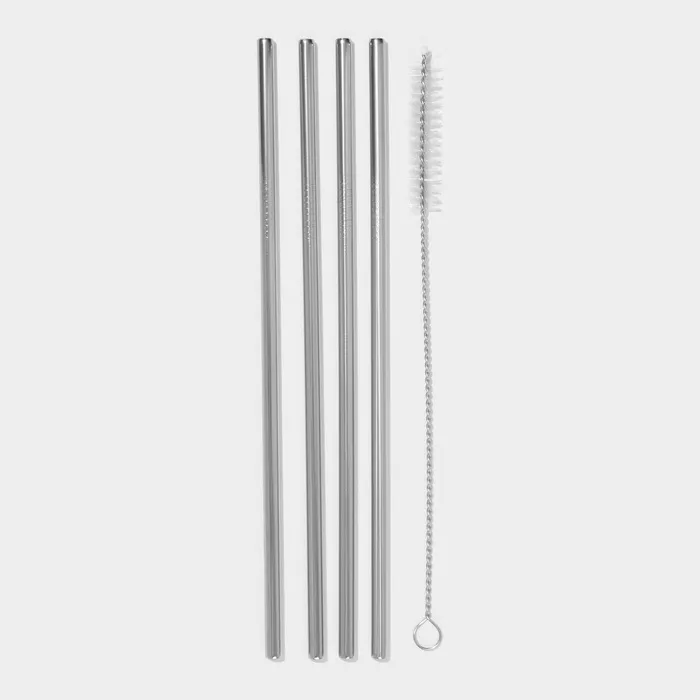 Трубочки для коктейлей Доляна Ice, 21 см, с ёршиком, нержавеющая сталь, 4 шт., форма МИКС — Характеристики