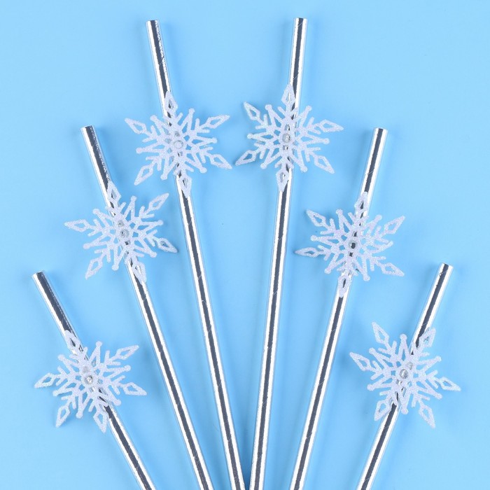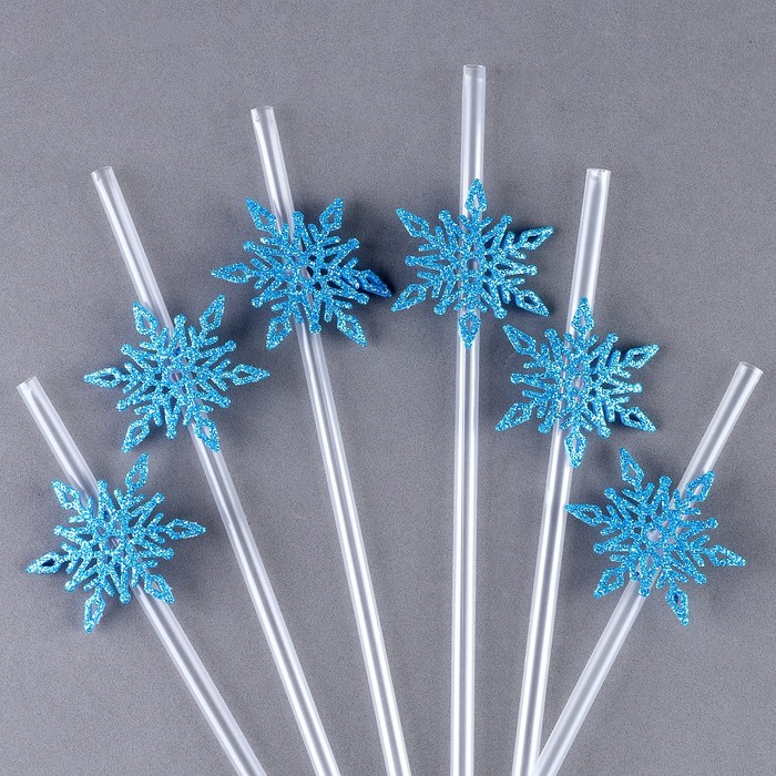 Трубочки для коктейлей одноразовые «Снежинки», в наборе 6 шт., голубые — Характеристики