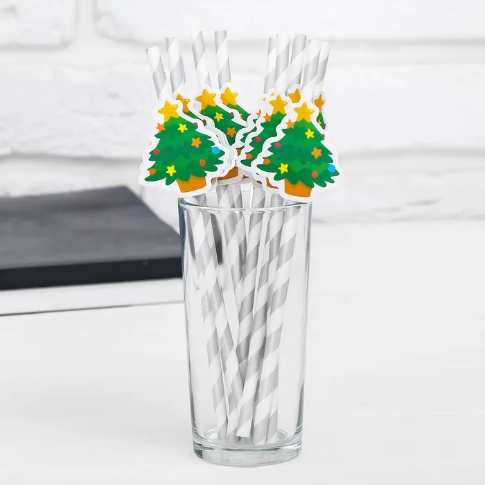 Трубочки для коктелей одноразовые «Снежинки», набор, 6 шт., цвет МИКС — Характеристики