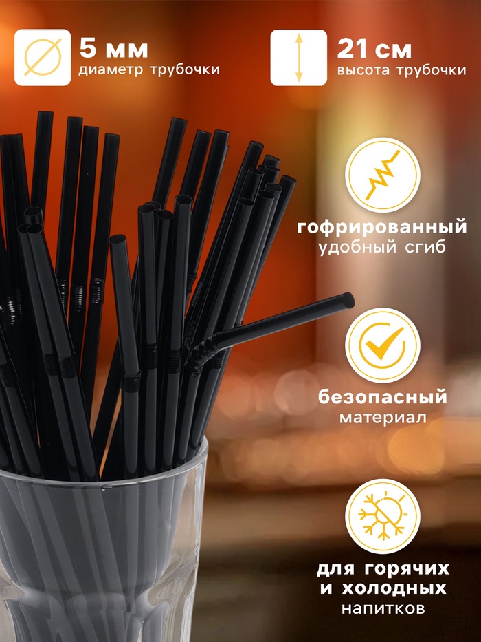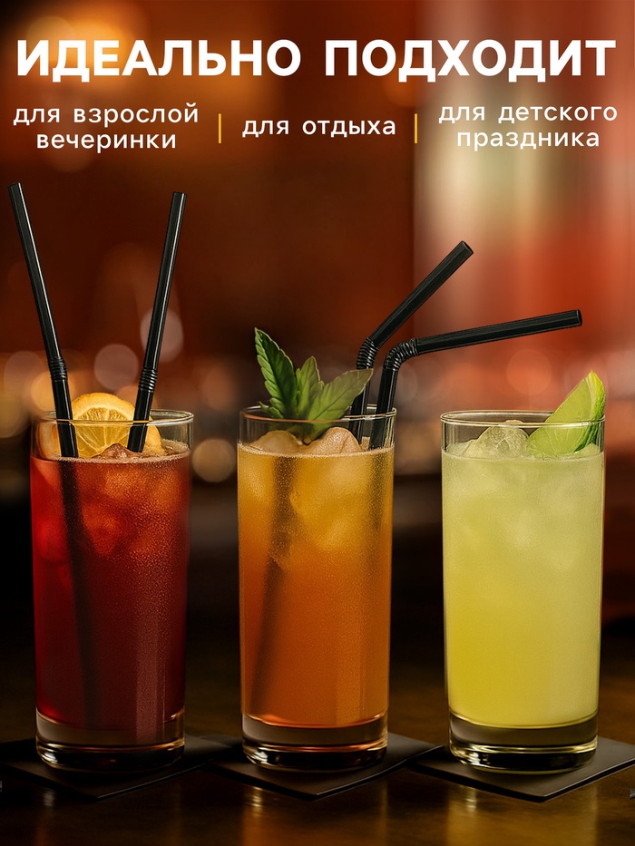 Трубочки не требуют дополнительных аксессуаров — их можно сразу подавать с напитками. Они подходят как для одноразового использования, так и для внутреннего применения на точках общественного питания.