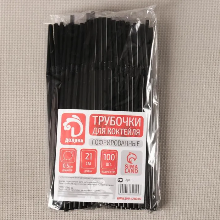 Добавьте элегантности и изысканности своим напиткам с этим набором из 100 черных гофрированных трубочек! Эти одноразовые трубочки длиной 21 см и диаметром 5 мм станут идеальным дополнением к коктейлям, сокам, кофе и другим напиткам в баре, кафе или на вечеринке. Гофра обеспечивает удобство использования под любым углом.