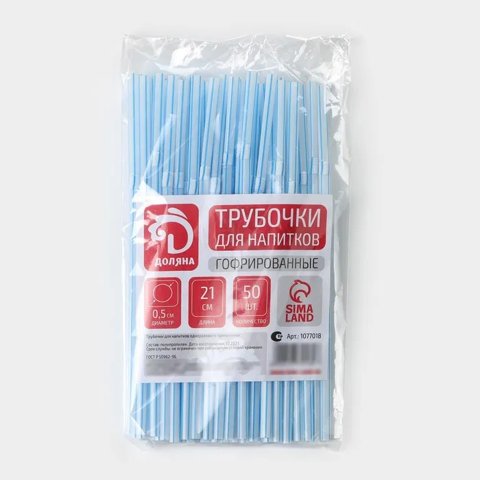 Трубочки одноразовые для напитков Доляна, 21 см, d=5 мм, с гофрой, в полоску, 50 шт, МИКС — Характеристики