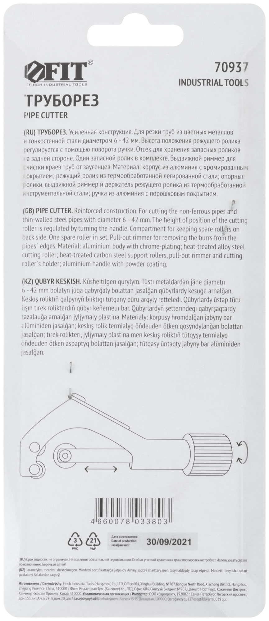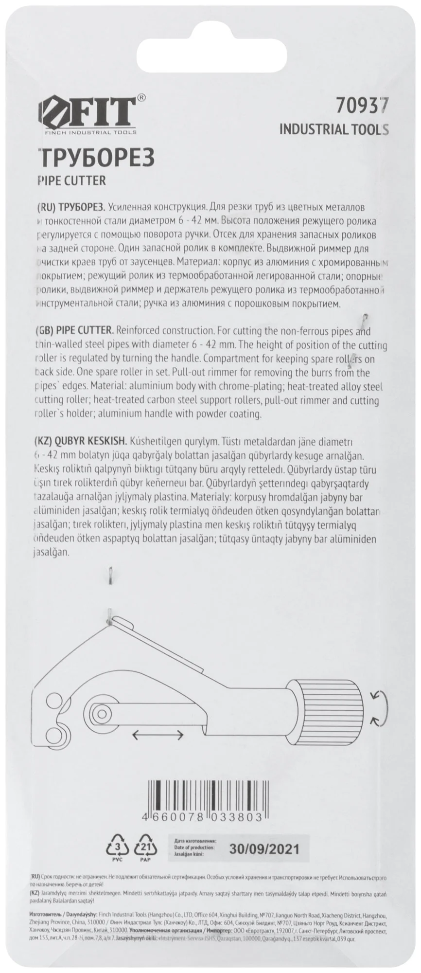 Труборез FIT идеально подходит для профессиональной резки труб из цветных металлов и тонкостенной стали диаметром от 6 до 42 мм. Это решение для мастеров и прорабов, которым необходимо быстро и точно выполнять резку труб на объекте.