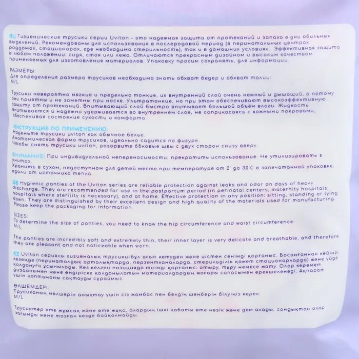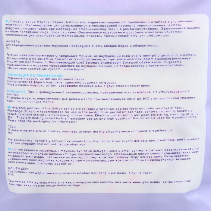 Трусики до и послеродовые одноразовые, размер S/М, набор 3 шт., Uviton — Характеристики